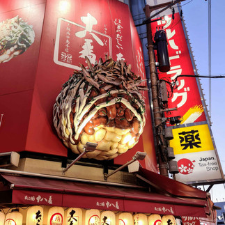 Ce quartier est bien connu pour son offre culinaire abondante où locaux, comme touristes, forment des files d'attente de plusieurs heures pour découvrir les spécialités locales 🐙. Nous nous contentons juste de nous balader dans ce bouillon d'humains et de nous imprégner de cette ambiance haute en couleurs où écran géants de publicités et enseignes en forme de nourriture cohabitent et créent la marque de fabrique bien réputée d'Osaka. Traversé par un joli canal, le quartier est charmant de jour et de nuit et nous est apparu idéal pour nous divertir dans les nombreux magasins et salles de jeux. Bref, Un coup de cœur !